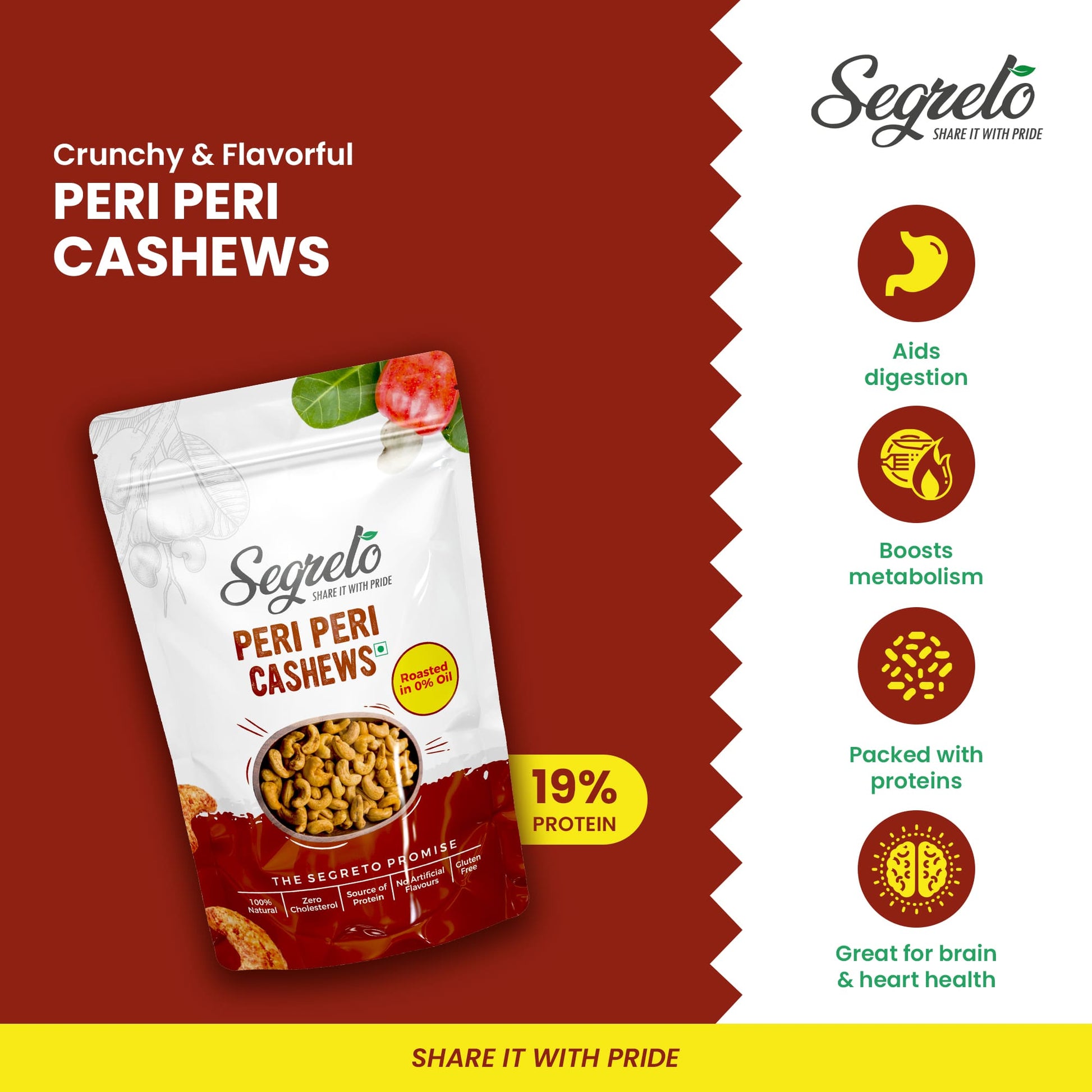 A fiery fusion of premium cashews and bold Peri Peri seasoning, these crunchy delights bring the perfect balance of heat, tang, and nutty richness. Packed with essential nutrients, protein, and antioxidants, they’re the ultimate snack for spice lovers—whether you're on the go, at work, or just craving something deliciously bold!